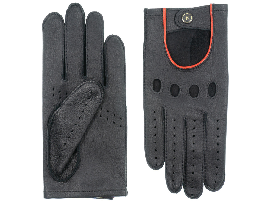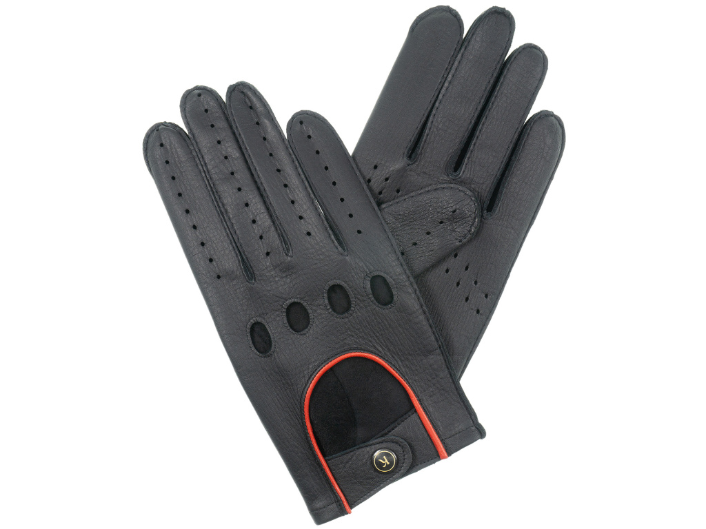 Pánské rukavice řidičské jelen - černé / červený lem